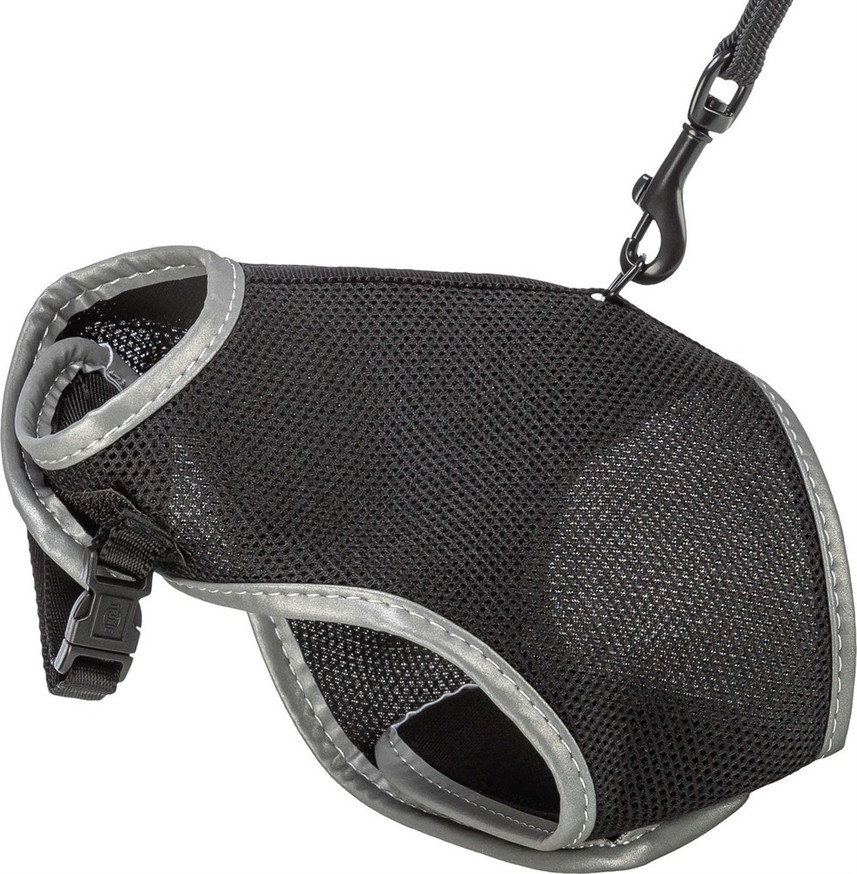 En bekväm kattsele med vaddering tillverkad av mjukt nättyg som andas. Selen är fullt justerbar runt bröst och mage. Selen levereras med ett elsatiskt koppel.